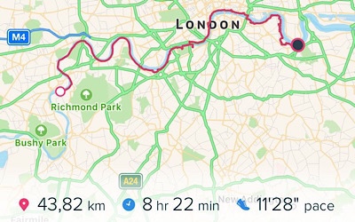 In the end, I made it as far as the Cutty Sark, some 5K from the Thames Barrier. I had finally registered the sunburn and recognised that I was hungry, dehydrated and a bit broken. Public transport from the Barrier is a messy combination of buses and trains, while there was a convenient station right by the Cutty Sark; I stopped, got some cold water inside me and called it a day. Disappointed not to have seen the Barrier, but I knew I had given it a good effort for an unplanned venture.